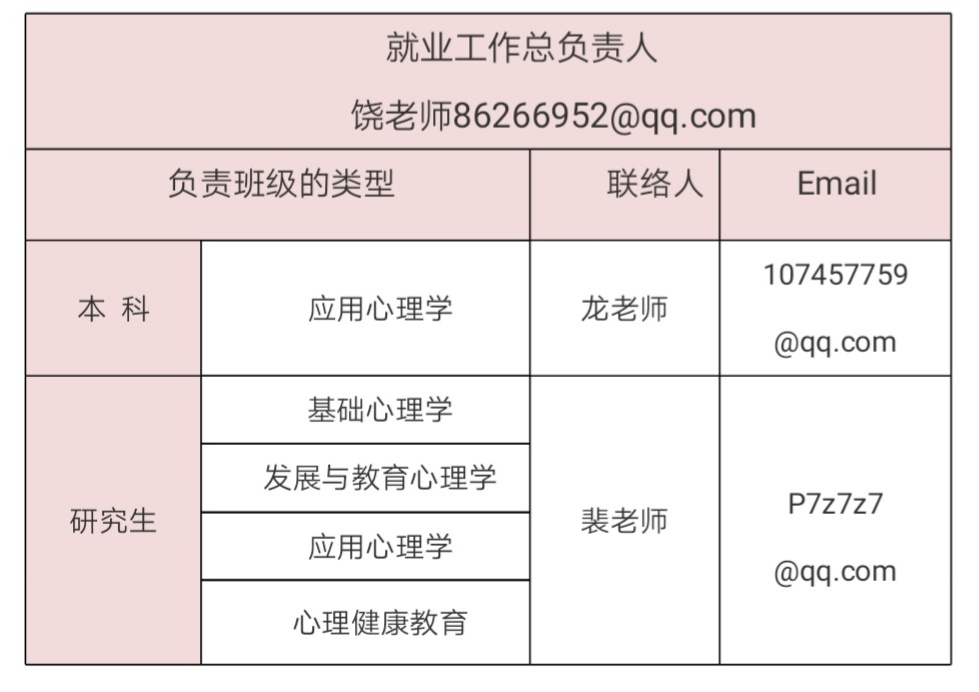 附:2021届心理学院毕业班就业工作联络人
