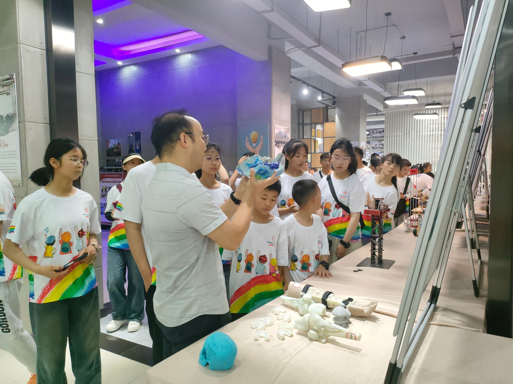 接着,同学们来到创新创业学院教育基地,观看3D打印技术和人工智能机器人等高科技,并亲自动手制作了简单脱水器模型,让同学们更加真切地感受科技无限的魅力,同时也在心里埋下了一颗渴求知识的种子。