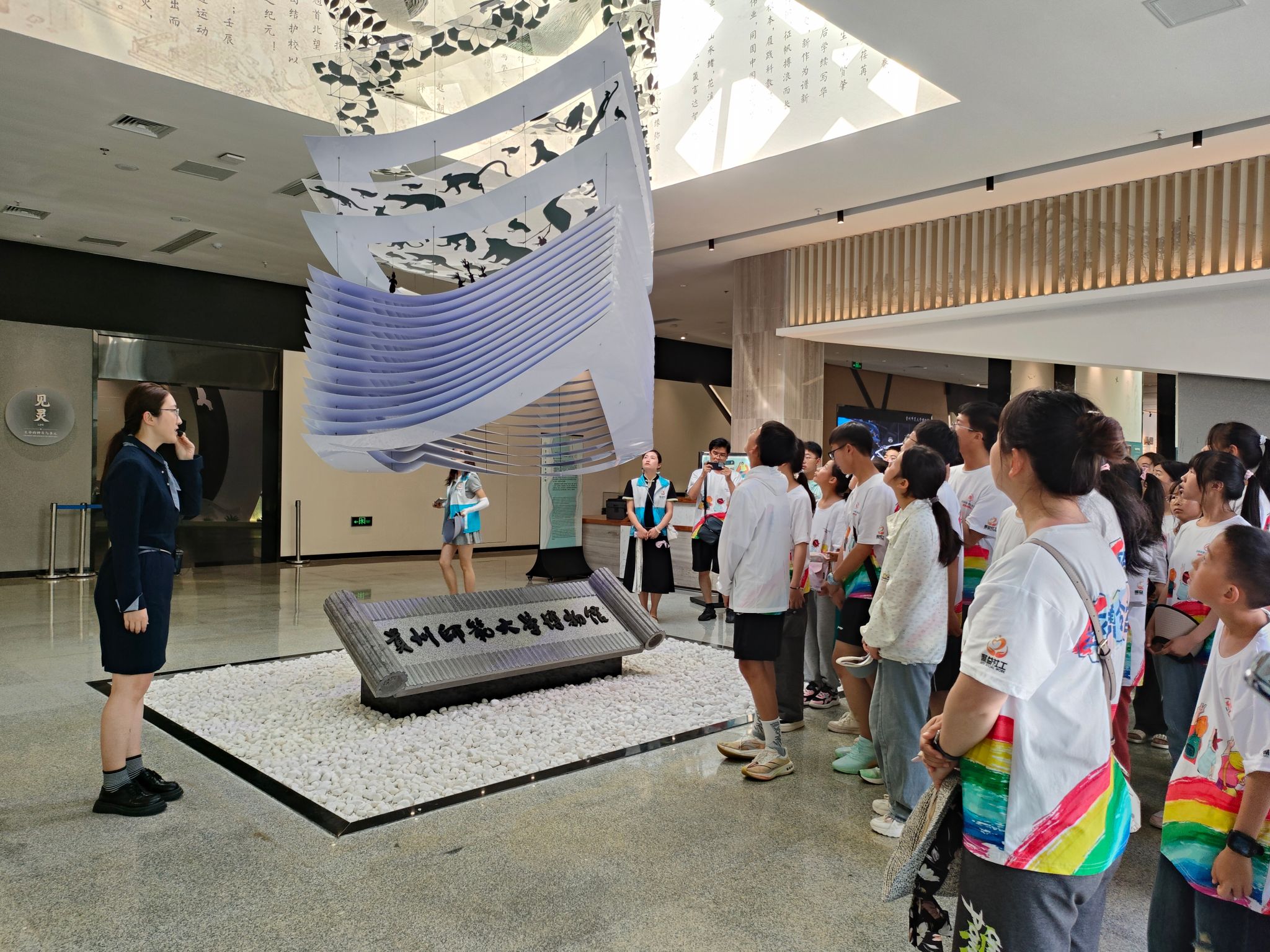 研学团到达我校后,在我院志愿者带领下走进贵州师范大学博物馆,在博物馆讲解老师的带领下,深入了解了贵州地质类标本、动植物标本、世居民族传统服饰、银饰、民族乐器、图片和数字资源信息。丰富的历史文化底蕴和科研成果展示,让同学们感受到了浓厚的人文气息和学术氛围,进一步增强文化自信,厚植文明根脉。