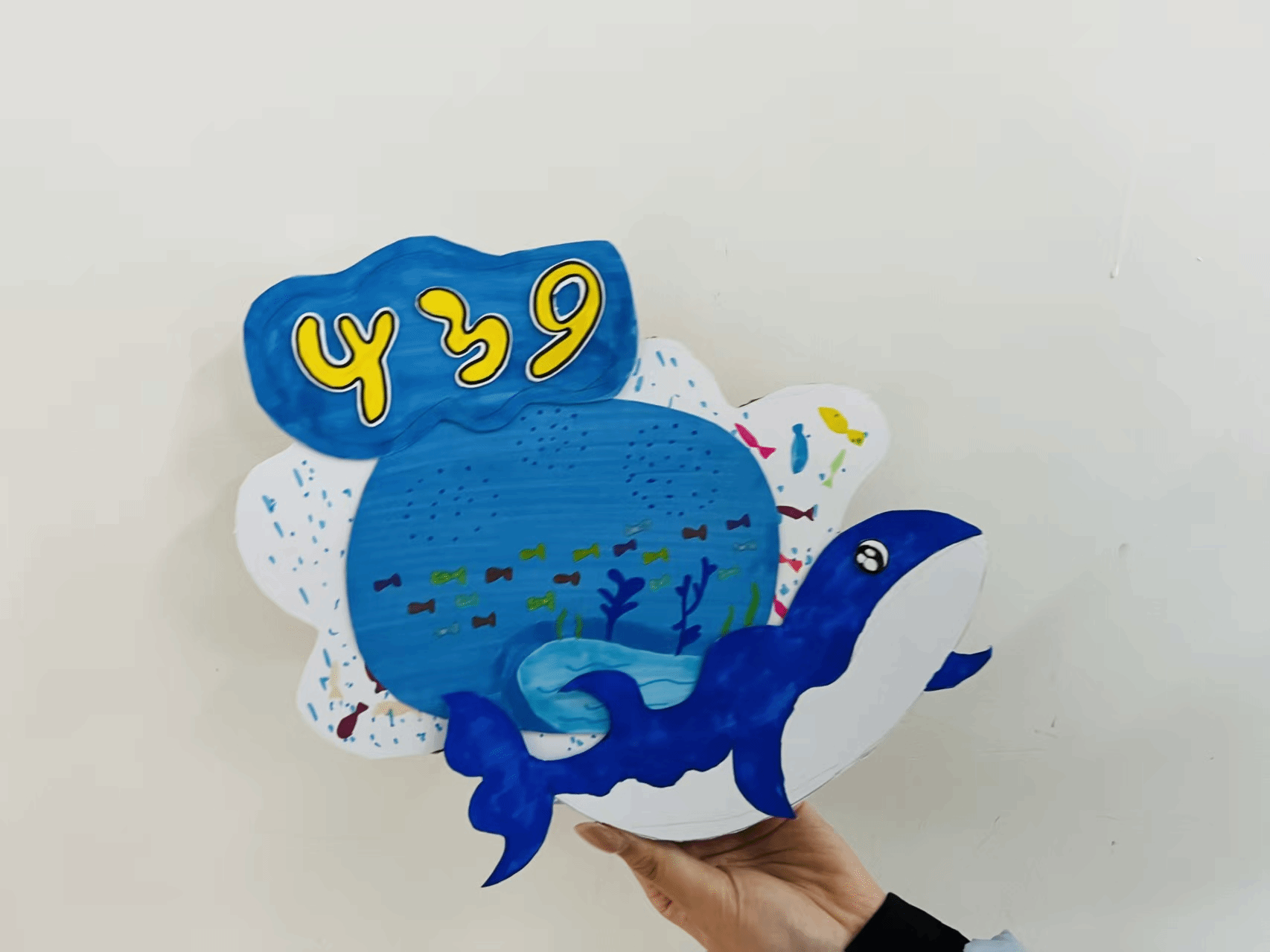 作品描述: 蓝鲸引航鱼群伴,深海共栖青春梦
