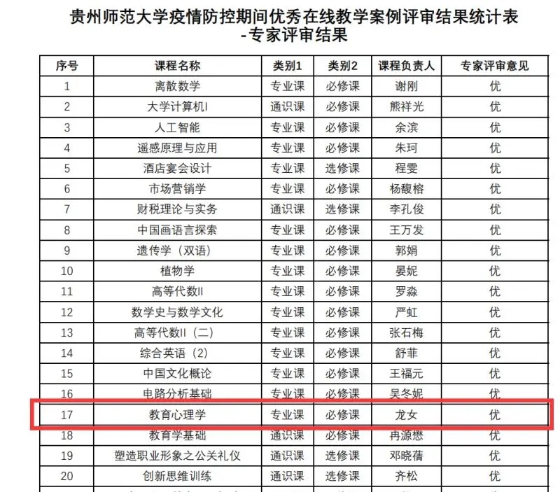 恭喜我院龙女老师申报的《教育心理学》获贵州师范大学疫情防控期间优秀在线教学案例。