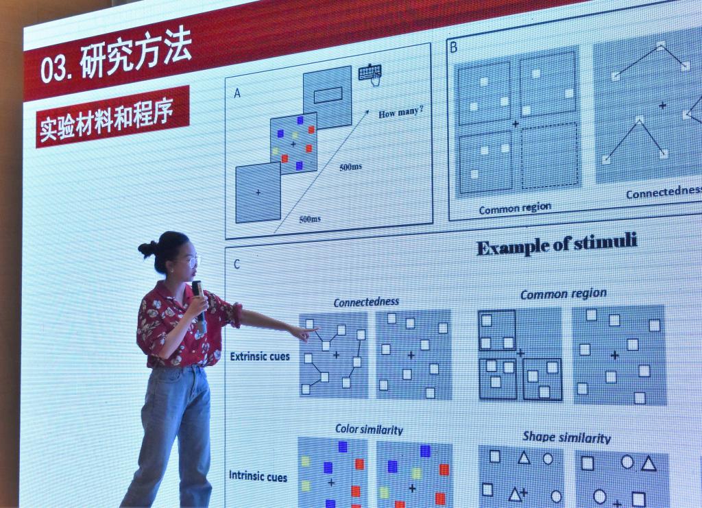 贵州师范大学心理学院杨环瑜博士的报告《基于内在分组线索和外在分组线索下数量感知的分组话策略》提出,数量感知的分组话策略中,外部分组线索和高数学水平的分组化效应更强;同时在分组化策略运用中,被试能够运用心理乘法进行数量感知。