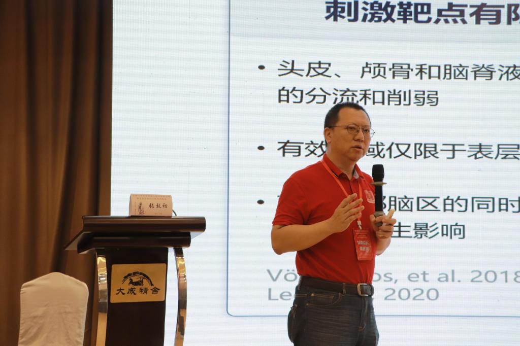 中国科学技术大学张效初教授的《经颅电刺激效果优化研究》报告,以经颅电刺激的优劣势分析为起点,提出在时间上和空间上优化该技术,并在实验中取得一定成效。
