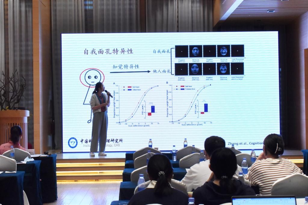 中国科学院心理研究所张颖博士作题为《自我面孔诱发时间知觉错觉》的报告。认为自我面孔时间知觉加工中自我面孔时距压缩效应的存在,为从时间知觉层面为自我面孔特异性加工提供了证据,并强调了自我意识在时间知觉中发挥的重要作用。