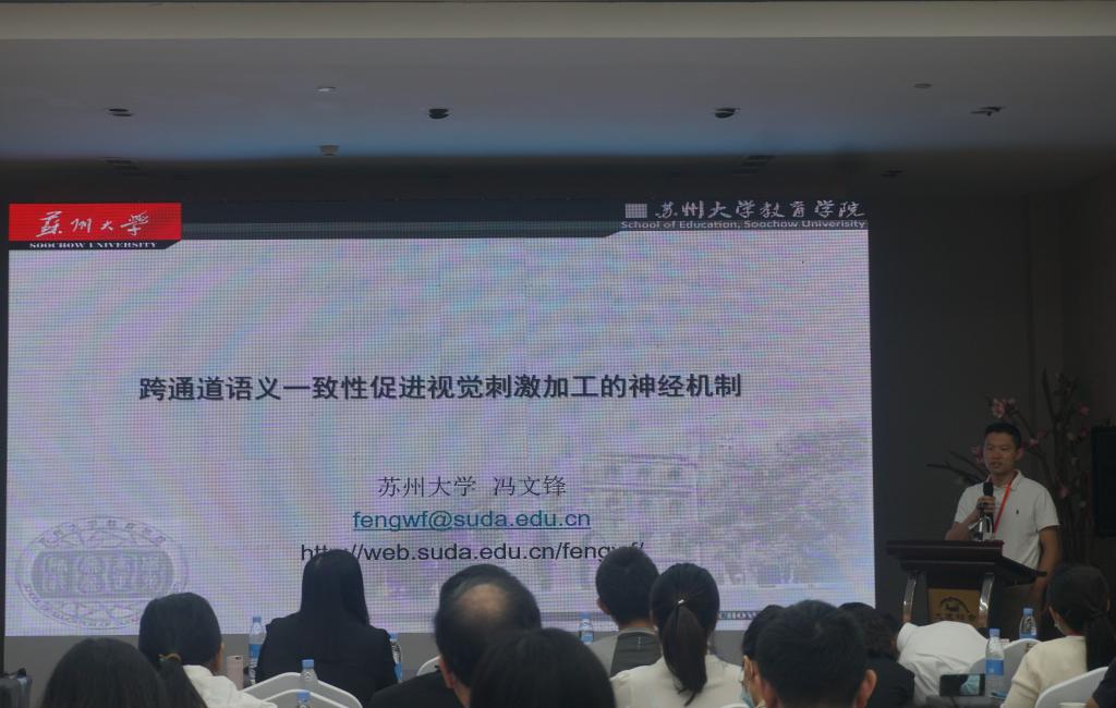 苏州大学教育学院副院长冯文锋教授作题为《跨通道语义一致性促进视觉刺激加工的神经机制》的报告,指出跨通道语义的一致性对注意的调节是基于跨通道整合,其调节过程包含两个跨通道整合层次(独立于语义的早期过程,依赖语义一致性的晚期过程)。