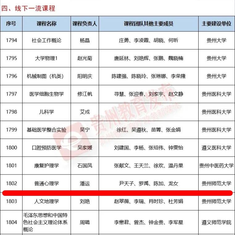 热烈祝贺由我院院长潘运任课程负责人,尹天子、罗禹、陈加、龙女老师任课程团队主要成员的《普通心理学》课程,荣获第二批国家级线下一流本科课程。