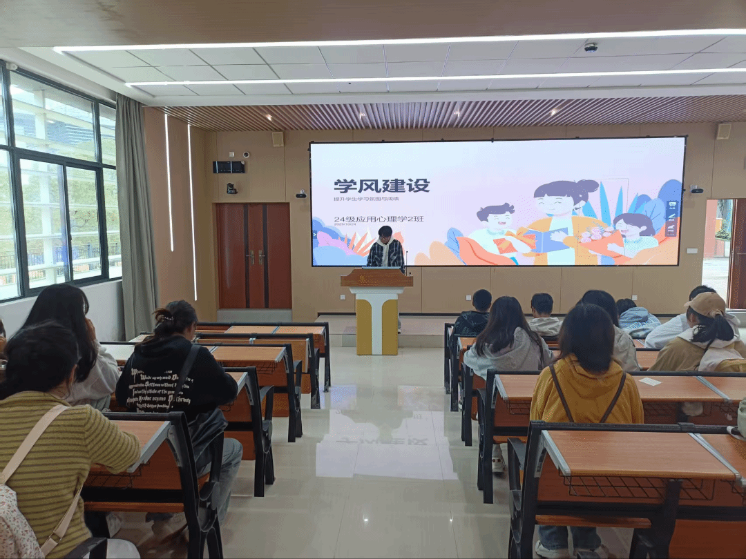 23级应用心理学班以“爱国铸魂、学风筑基”为题召开主题班会。在爱国主义教育环节,班级通过历史脉络梳理与时代发展展望相结合的方式,通过展示百年征程中的青年奋斗事迹与新时代国家发展成就,深刻阐释个人理想与国家命运的紧密关联,在互动分享中进一步凝聚班级共识,激励同学们以勤学实干践行青年使命;学风建设环节聚焦学习效能提升,围绕立志备战考研、抓好教资/四六级过关率展开讨论,着重强调树立“严谨求实、杜绝浮躁”的学术态度,为班级学风提质筑牢根基。
