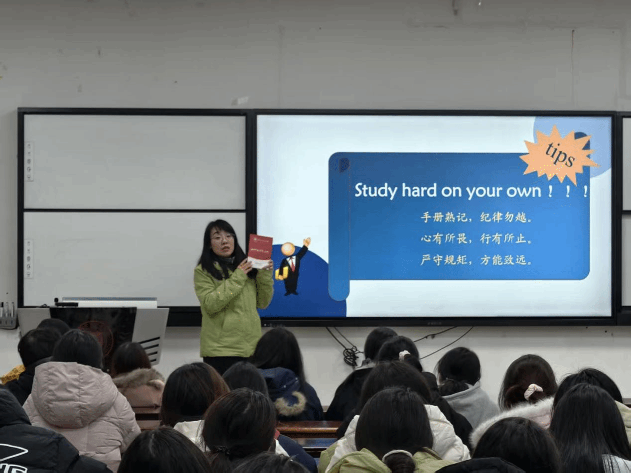 许老师聚焦备考实务,分享了高效的学科复习方法与策略,引导学生制定科学的复习规划。同时,她以鼓励性的话语积极提振学生的备考信心,帮助大家以更积极的心态和更有效的方法,迎接大学阶段的第一次期末考试。