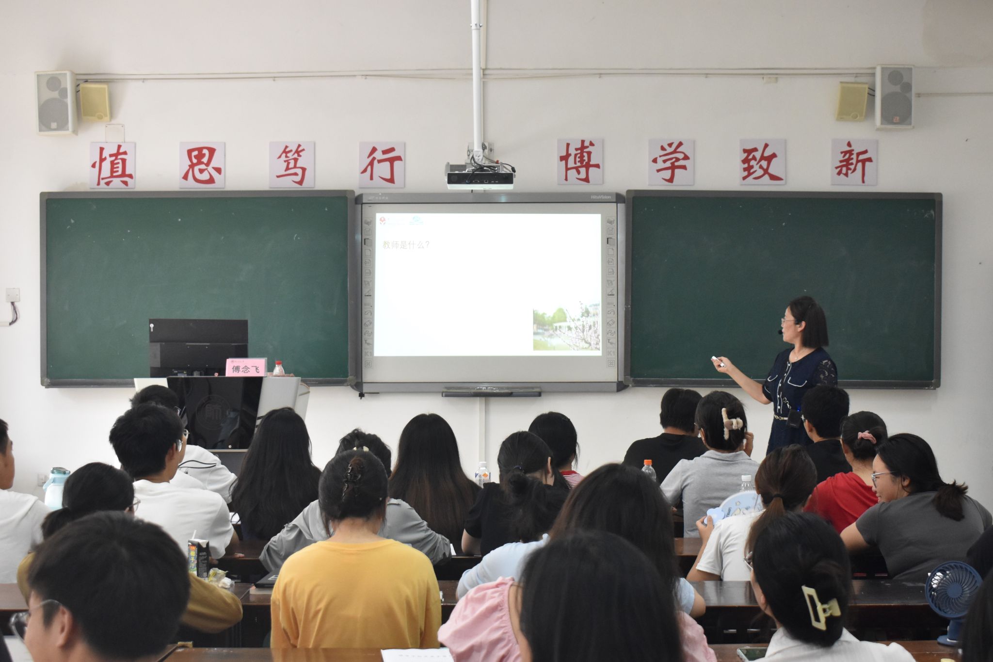 讲座伊始,傅老师给同学们讲解了何为班主任,引出了班主任的多重身份及其责任,主要围绕班主任的日常事务、实习各阶段的主要任务、如何与学生相处、如何塑造良好的班级文化四个方面展开讲解。她谈到班主任的日常事务是非常辛苦和繁琐的,我们要保持对工作的热爱,学会智慧的工作,充分利用班级管理优化策略,做到尊重、包容、帮助学生。接着,傅老师从实习前的准备、进入实习学校以及正式实习三个阶段来介绍如何成为一个合格的实习班主任。她强调实习前要做好充分的准备,不仅是理论知识,也包括个人的修养。进入实习学校应当了解学校的规章制度,能够做到吃苦耐劳,主动承担班主任的责任,正式实习阶段要服从学校的安排。