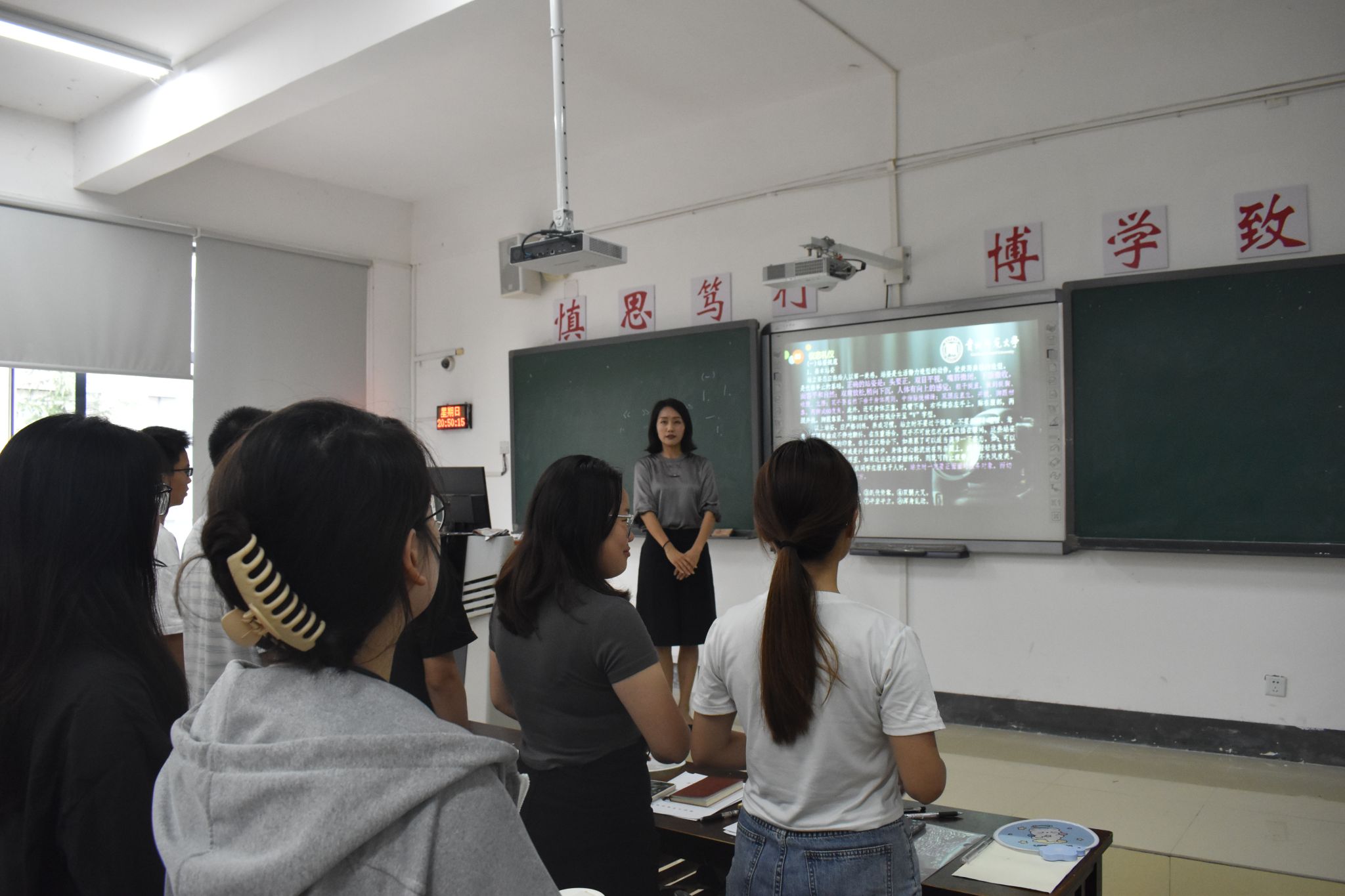 为增强2020级应用心理学班学生在实习岗位上的业务素质,提升工作能力和公文撰写水平,展现良好精神面貌,6月30日上午,心理学院党委副书记饶蕾老师在学院2203开展了实习日常公文写作及礼仪行为规范的主题培训课。2020级应用心理学班全体本科生参加培训。