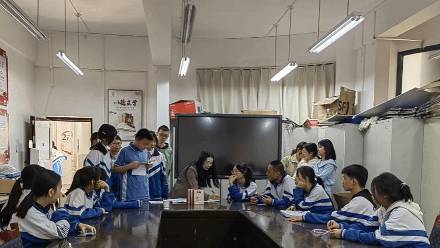 4月27日最后一场初赛结束后,罗媛老师和实习生们立刻认真的统票算分,并于当日下午在二楼党员活动室进行贵阳市第十二中学第二届“笃学慎思”辩论赛复赛抽签及后续辩论赛活动安排的讲解。