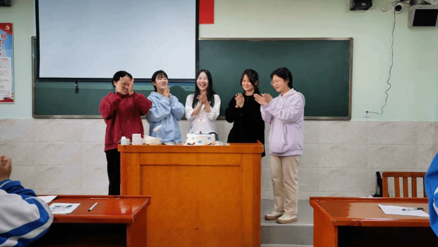 4月26日下午,罗老师和实习生们带领“阳光之心”心理社小组的同学们展开对心理剧剧本的讨论,就剧本的脚本进行指导与建议。最后,每个小组的同学都基本上完成了脚本的编写工作。在第二节课课间,罗媛老师带领学生们向四位实习生送上毕业祝福,实习生们与大家共同分享喜悦,度过了感动、愉快的一天。