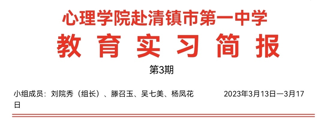 践行师德规范,增强职业使命感;学习课堂教学,锻炼专业能力。我们四人于清镇市第一中学实习,经过前两周的学习,在第三周逐渐适应了实习生活,跟随老师们顺利开展了各项实习工作。