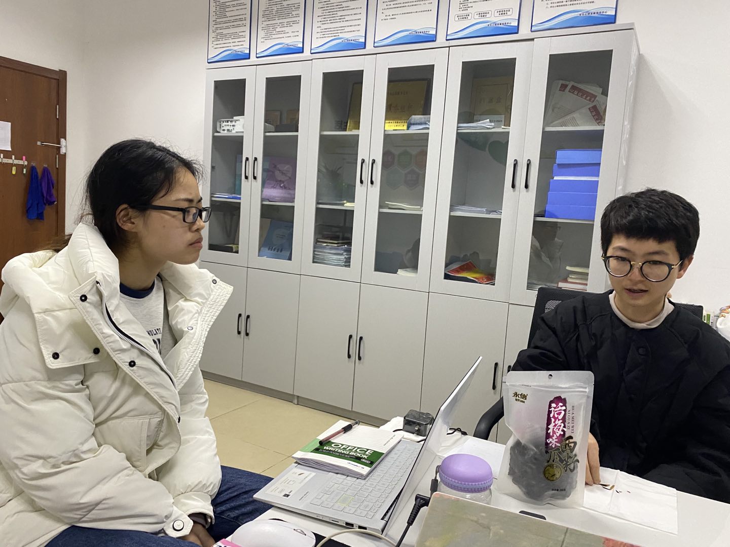 在学生心理发展指导中心办公室值班期间,我们负责接待来访者、各活动室和咨询室的管理工作、整理学生资料等,帮助老师和学生协调咨询和活动时间。滕召玉同学首次进行了对来访学生的心理疏导工作,而后与罗丽欧老师进行咨询案例探讨;最后,我们一齐学习了贵阳市中小学心理健康云平台系统以及各种咨询记录表、评估表的填写与管理、完成心理咨询预约登记工作。