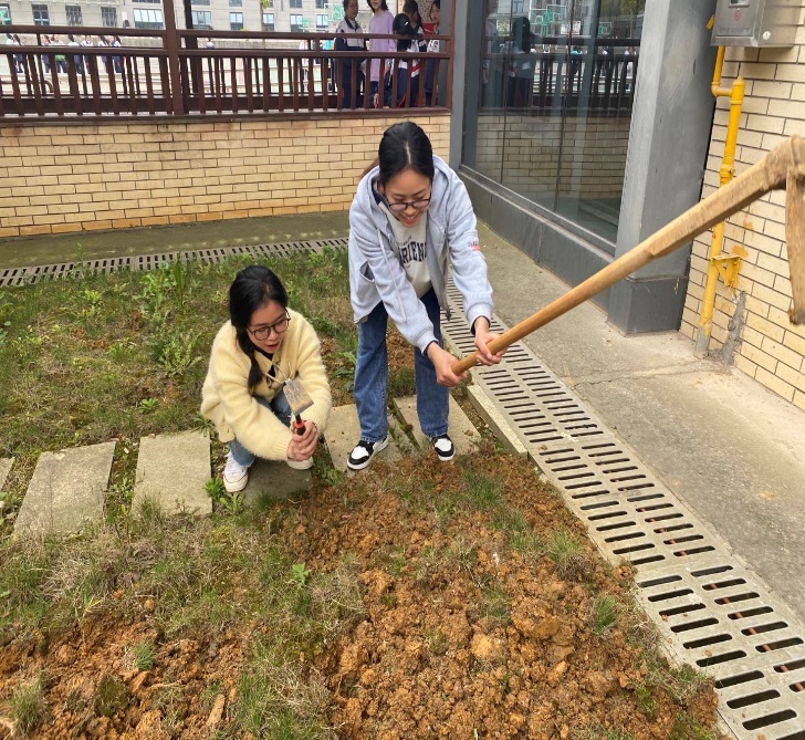 除听课时间与学生接触外,我们四人通过兰杰老师的校本课《美的四重奏》与学生一起体验生命的孕育,从规划土地、种植计划到挖土播种,体验到了生命的美好和力量,也成功地与学生拉近距离、进行了更多的交流。