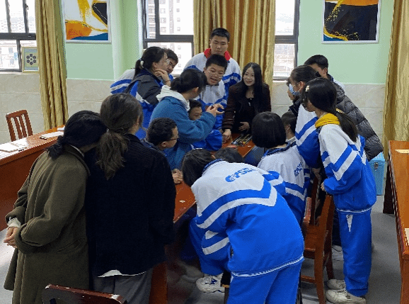3月14日早上,实习生容晴带领“阳光之心”心理社笃学小组的学生在学校阅览室完善3月的社团活动方案。3月15日下午社团课的第一节课上,罗媛老师先对吉祥物设计及其视频介绍进行工作安排,随后带领学生一起玩了卡牌游戏,培养学生的共情能力,实习生也参与其中,体验了其中的困难与乐趣;第二节课上,罗老师根据社团成员所拍摄的视频有针对性地进行指导,同时播放学习视频。罗老师强调,拍摄一段视频时构图和光线的运用至关重要,为稍后大家策划、拍摄心理视频搭建好基础。