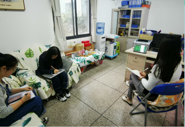 陈露露和田颖在心理咨询处协助罗媛老师完成相关工作的开展,蒙娟在教育处协助老师完成相关工作的开展。