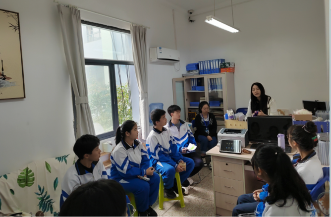 3月15日上午三位实习生达到贵阳市第十二中学,罗媛老师很早就在学校大门口等候三位同学的到达。罗媛老师从事心理健康教育工作多年,而且也是贵州师范大学应用心理学专业毕业,因此让三位同学感到很亲切。在简单的交谈之后,罗老师带领两位同学参观了学校。