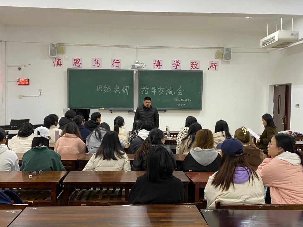 11月29日下午,心理学院2018级应用心理学班于学院楼2205教室开展了考研指导交流会。心理学院副院长陈维老师作交流指导,18级应用心理学班辅导员及备考学生参会。