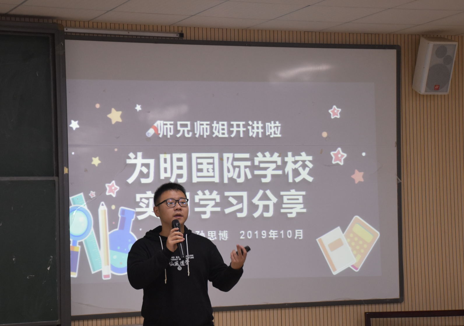 为了帮助学生更好地了解本专业在中小学的具体工作和提升学生专业素养,10月24日上午,心理学院特邀2016级应用心理学专业在外实习生孙思博于花溪校区心理学院2520教室为大家开展了实习分享交流会。学院2017、18、19级应用心理学本科生全员参加。