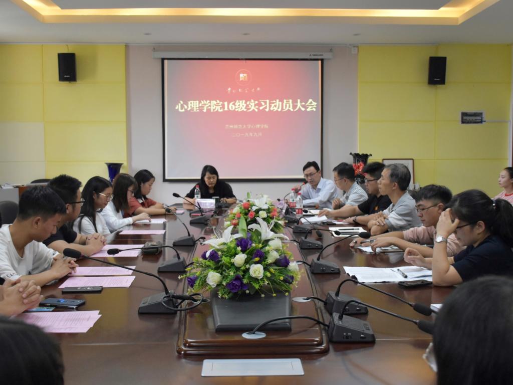 9月5日下午,贵州师范大学心理学院在学院3楼会议室召开2016级本科生实习启动大会。学院党委书记杨建原、副院长潘运、系主任罗禹、曾练平,创新创业办公室主任陈维,2016级班主任、2016级全体同学参会。会议由罗禹主持。