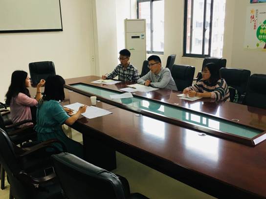 7月 10日早上 8点,应用心理学教学实习小组成员陈顺贤,陈建锴,谷佳妍, 陈再宏与溪南高中的刘丽娜老师进行了第一次线下教学指导。