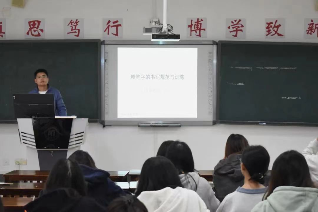 为了提高我院学生的教学技能,增强同学们写好粉笔字的意识,强化学生粉笔书写能力,10月26日,心理学院组织21级和22级本科班全体同学参加了粉笔技能培训,本次培训邀请了王旭老师对同学们进行针对性的训练指导。