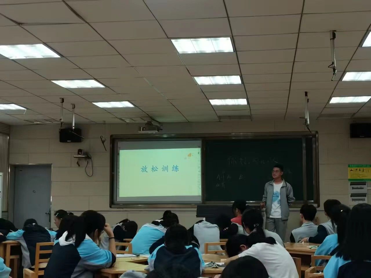 10月17日,实习小组成员主要听课、上课。尚洁、孙秀菊和罗开以“释放压力”为主题分别给高三(6)班、高三(3)班和高三(2)班进行授课。其余小组成员听课并提供相关帮助。