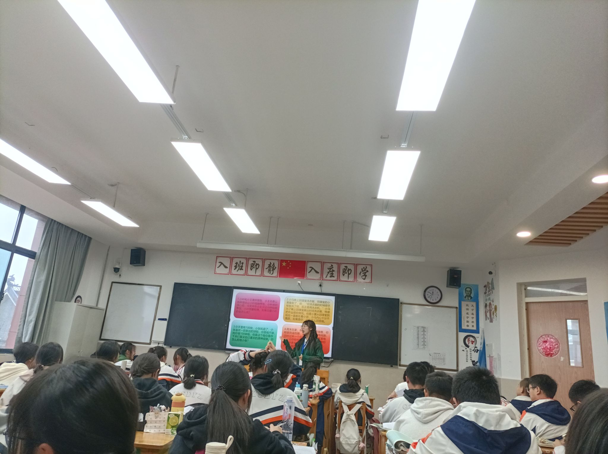 实习生活已过去一半,我们四名实习老师已从最初的手忙脚乱到渐渐适应再到现在的得心应手。在带教老师的指导下,我们完成了对心理中心知识园地的布置,协助指导老师完成了高一年级的心理测评工作、筛查学生心理健康状况,已对100余名预警学生展开心理访谈,后期也将一直持续此项工作。另外,带教老师给予了我们充分的锻炼机会,经过充分的准备,不断的打磨,心理组的实习老师已进入十七个班级为学生授课。我们知不足而自反,知困后自强,通过实践不断发现问题、完善自己、提升自己。
