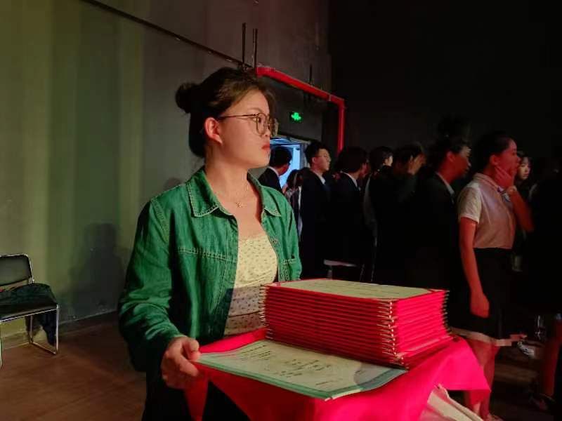 在这段时间里,我们参与了学校毕业典礼的后勤辅助工作。作为拍照人员参与了高三毕业典礼的初次彩排的工作,并整理了相关证书;在学校毕业典礼开展时,负责证书颁发的准备工作。第一次体验到幕后准备工作,深刻明白了:任何一场活动的背后都有一群默默付出的工作人员,一场活动能够顺利开展,都离不开他们的辛苦付出。