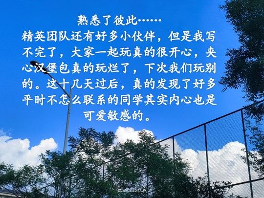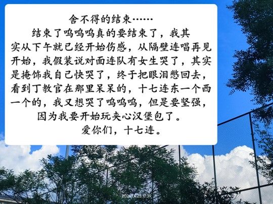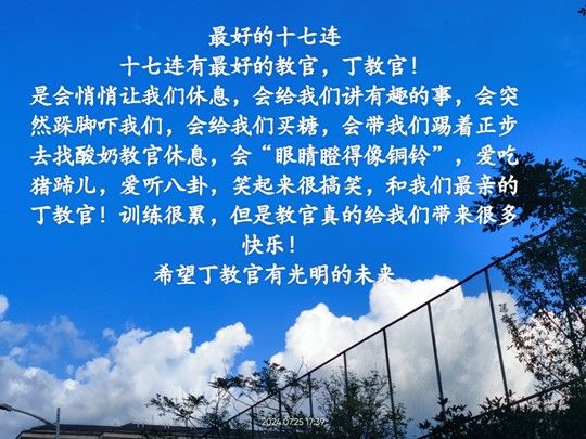 这种默契关于集体之间的包容与配合;关于同学们与教官之间诚心相待;关于一场美好的相遇。