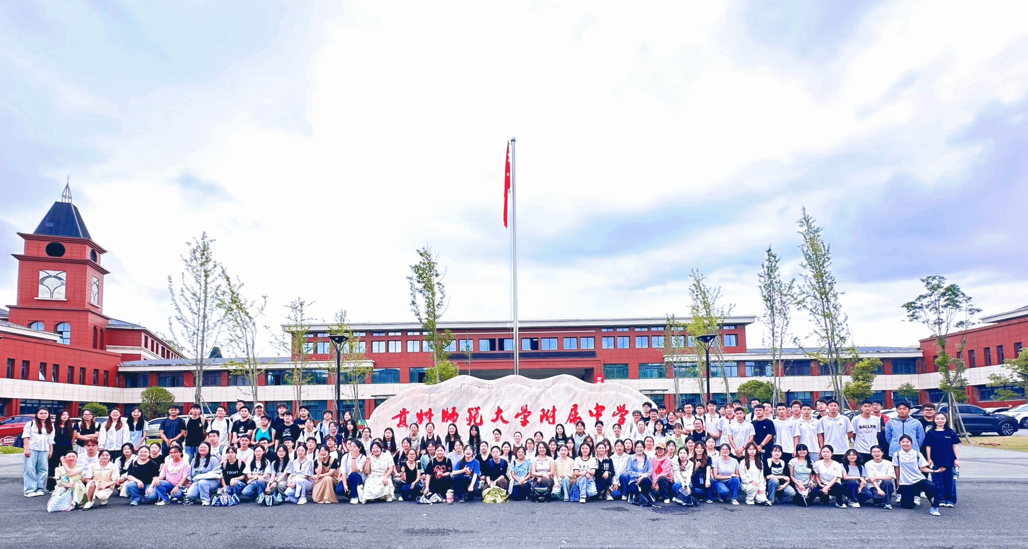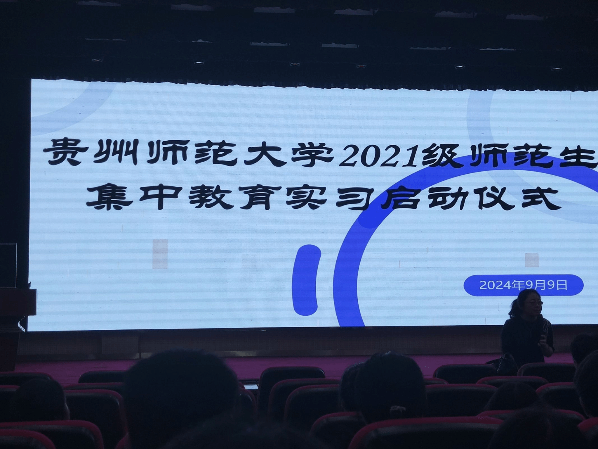 在实习小组抵达贵师大附属高级中学校门口时,我们满怀激情与期待在校门口进行了大合照与小组合照,随后,我们跨入了校门,在带队老师与校领导的带领下进入了实习学校,在礼堂内开展了贵州师范大学2021级师范生集中教育实习启动仪式,牛颜老师以及学校各领导强调了实习期间的各项注意事项,提醒实习生们注意人身安全,一起努力,顺利完成这次实习工作。