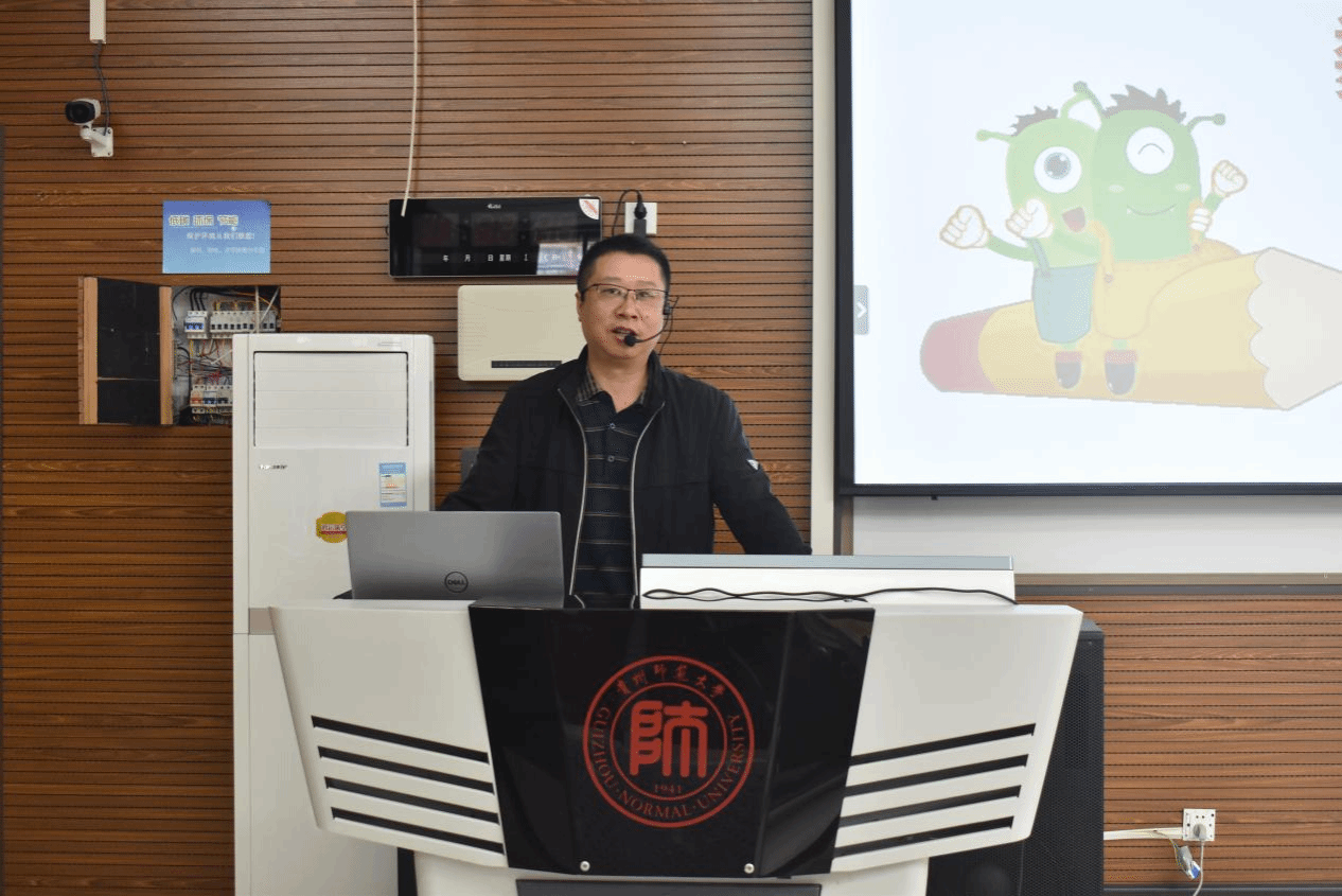 10月22日,学院邀请到黔南科技学院贺石东老师为应用心理学2022级和2023级本科生开展教师语言创作技能与训练培训。贺石东指出教师语言不仅涵盖有声语言,而且还包括无声语言,有声语言包括教师在教学过程中使用的口头语言,像讲解知识、提问、反馈等,无声语言主要是教师的肢体语言和副语言,包括眼神、手势、头语、体态、表情等。