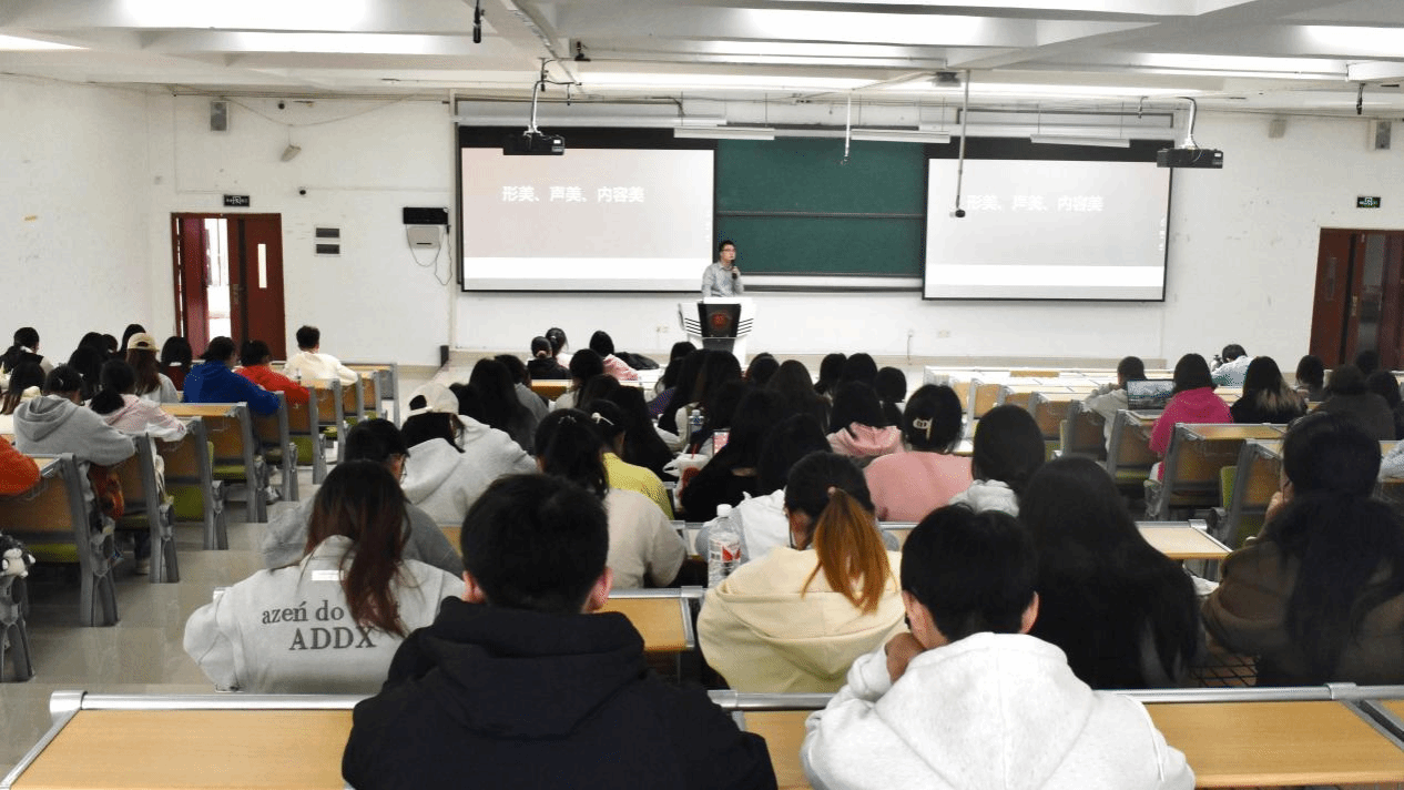 贺石东表示教师仪表礼仪在教学过程中重要性,指出教师气质、品位以及知识涵养都会潜移默化影响着学生。贺石东还传授了普通话的发音及运用技巧,指导同学们进行单字、双字以及段落的发音训练,并示范讲解了口唇肉训练以及胸腹联合式呼吸的方法。