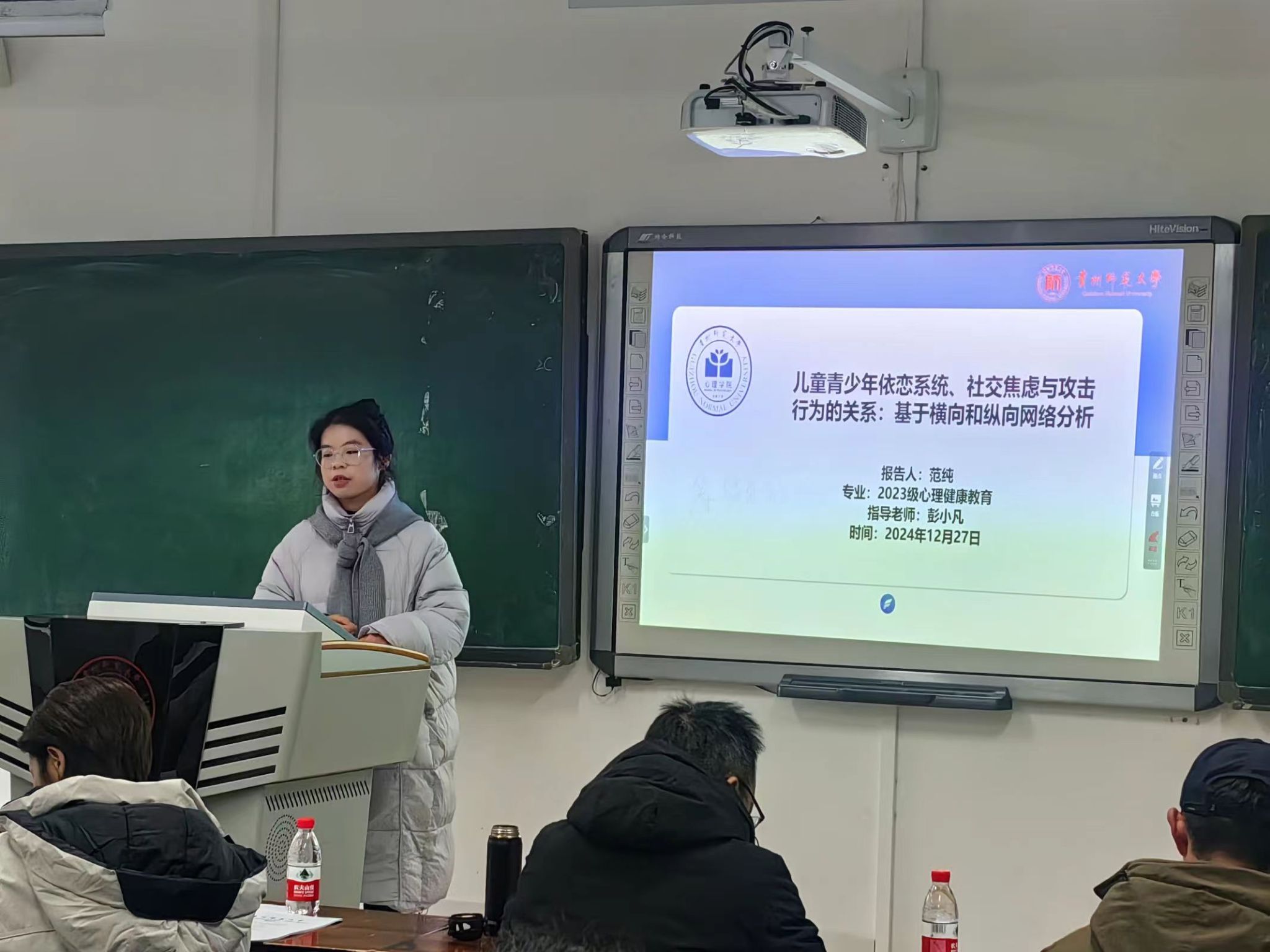 为提升研究生学位论文的质量,确保论文研究主题具有可行性,12月27日上午,心理学院2024年下半年硕士研究生学位论文开题答辩分别在公教楼和心理咨询中心顺利开展。此次开题答辩共有70名硕士研究生参与,其中全日制硕士研究生52名,非全日制硕士研究生18名,共分为9组,每组由3位学院导师担任答辩委员。