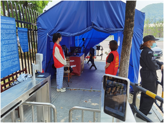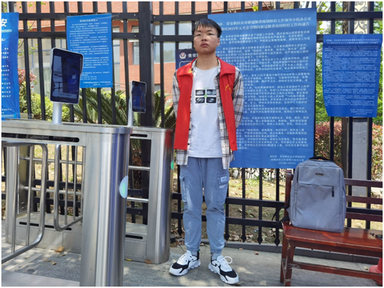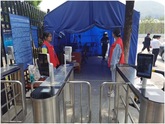 我院“文明监督员”在学校东门,配合进校人员身份的核实,疫情防控等工作。