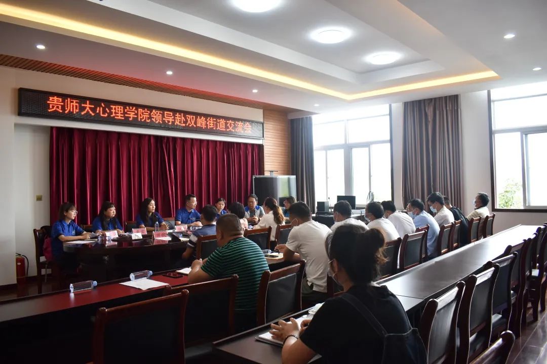 2021年7月21日,贵州师范大学心理学院“三下乡”志愿服务队来到贞丰县双峰街道的第四天。由院党委副书记饶蕾、副院长罗禹带领的心理学院教工党支部教师党员代表来到双峰街道开展了送培下乡活动。活动主要分为两个部分,一是工作交流会,一是基层干部心理疏导专题讲座。双峰街道主任王元英、副主任付洪微,街道党工委委员、人大工委主任田秋,及各社区基层干部参与活动。