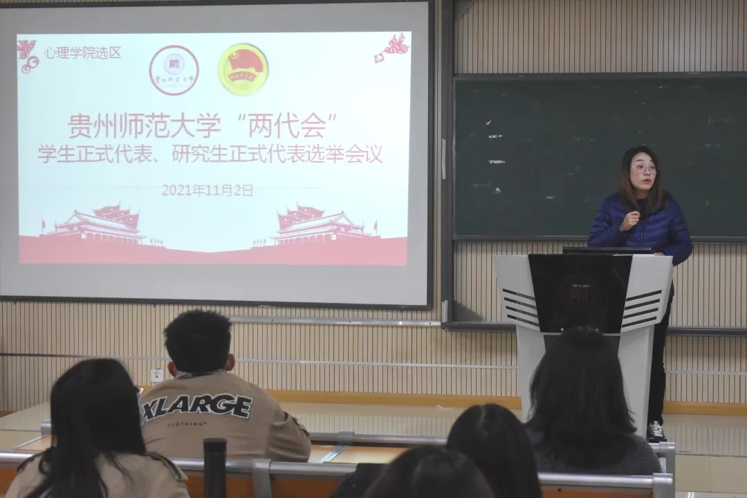 11月2日中午,心理学院团委于文2520召开心理学院学生代表、研究生代表会议,选举我院出席贵州师范大学第二十二次学生代表、第二次研究生代表大会正式代表。会前各支部推选的30名学生代表和32名研究生代表参会,院党委副书记饶蕾出席,院团委书记高阳主持会议。