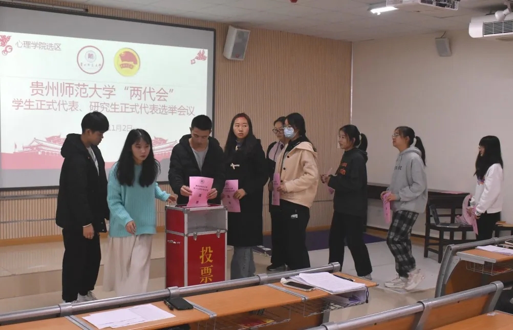 选举会上,工作人员宣读了《贵州师范大学第二十二次学生代表大会代表、贵州师范大学第二次研究生代表大会代表选举办法》并通过了监票人、计票人、候选人名单。大会严格按照选举程序,以无记名投票方式差额选举产生参加贵州师范大学第二十二次学生代表大会和第二次研究生代表大会代表。