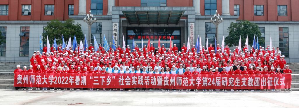 2022年7月6日上午,心理学院暑期“三下乡”志愿服务队全体成员带着饱满的热情参加了贵州师范大学2022年暑期“三下乡”社会实践活动暨贵州师范大学第24届研究生支教团出征仪式。