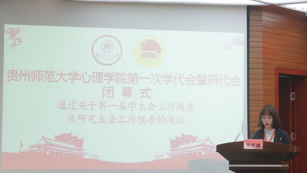 11月27日,心理学院第一次学代会暨第一次研代会于花溪校区会议中心召开。贵州师范大学团委副书记李正军,心理学院党委书记杨建原、院长潘运、副书记饶蕾、副院长罗禹,院党委委员、研究生科科长黄华宇,院团委书记高阳以及我院63名正式代表、列席代表参会。大会全面总结了过去一年院学生会和研究生会的各项工作,选举产生了院学生会和研究生会新一届主席团成员。