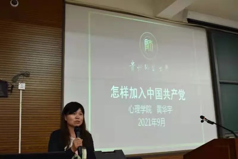 首先,黄华宇向同学们介绍了目前心理学院党支部建设与党组织发展基本情况。她表示心理学院的同学都具有较好的政治素质,学院党员队伍逐渐壮大,欢迎并鼓励2021级研究生新同学积极向党组织靠拢。