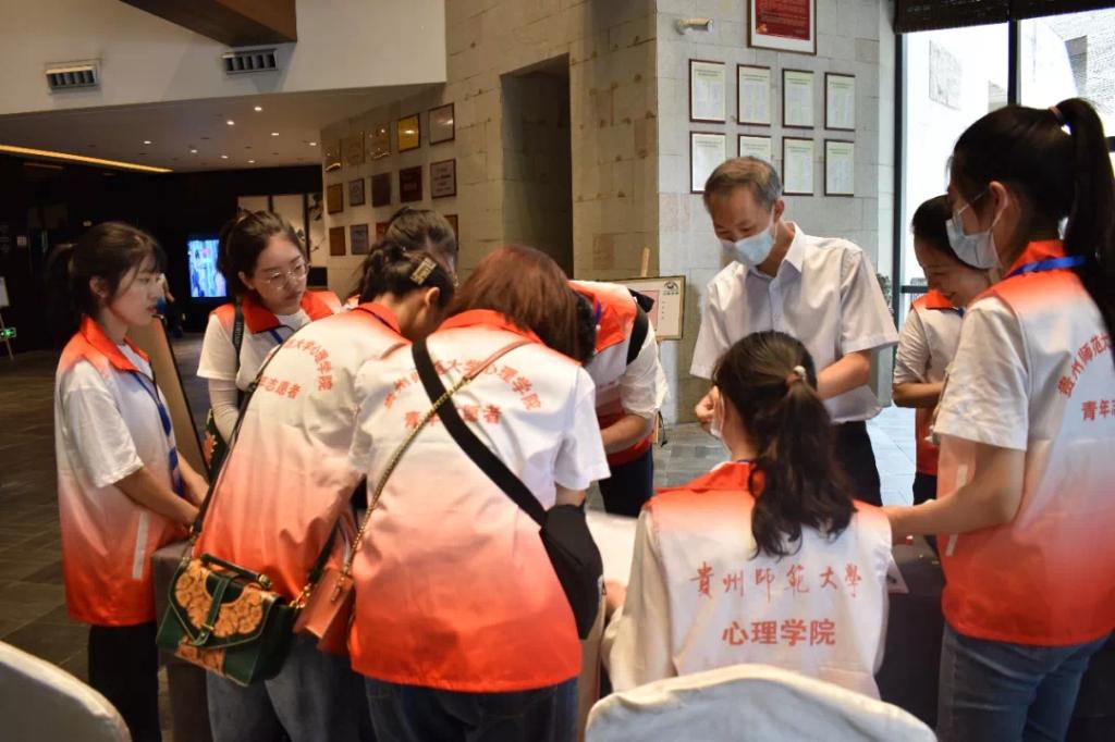 10月9日,由中国心理学会普通心理和实验心理专业委员会主办,贵州师范大学心理学院承办的中国心理学会普通心理和实验心理专业委员会2021学术年会(以下简称“年会”)圆满落下帷幕。此次大会的成功举办得益于参会专家学者们的大力支持、为大会筹备辛苦付出的老师们,另外,还因为有一群身着红色和蓝色马甲的同学,他们忙碌的身影,活跃在会场、报到点、资料室、电梯间等每一个需要他们的角落,他们就是参与本次年会服务的55名可爱的志愿者。