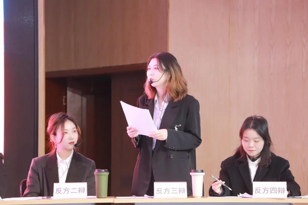 辩论结束后,李书记对本场比赛进行了点评,她首先称赞了辩手们的激情和精彩表现,肯定了双方团队之间的相互配合及气势的把控。其次,她梳理了辩手们的辩论思路,并对两方的辩论分别进行了详细的点评,她表示两方虽然有完整的逻辑链,但在论点的思考深度以及环节的衔接上仍存在欠缺,每一个点若可结合历史及实例进行论证则会使论证更加丰满。