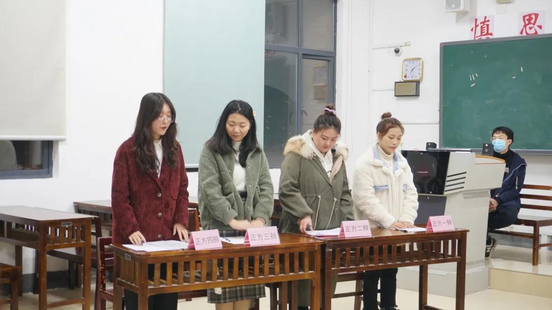 11月14日,初赛在学院楼2105教室拉开序幕。初赛共十支队伍分别围绕“大学宽松式管理利是否大于弊”、“安乐死是否应该合法化”、“青年人更应该培养自豪感还是危机感”等五个辩题展开讨论。本次比赛邀请了葛文静、顾菲、余恬菾三位有丰富辩论赛经验的同学担任评委。经过了五场激烈的比拼,最终“好汉帮”队、“对方辩友请坐下”队、“暗鲨”小队、“辩论好难不如学心理”队等4支队伍成功晋级。