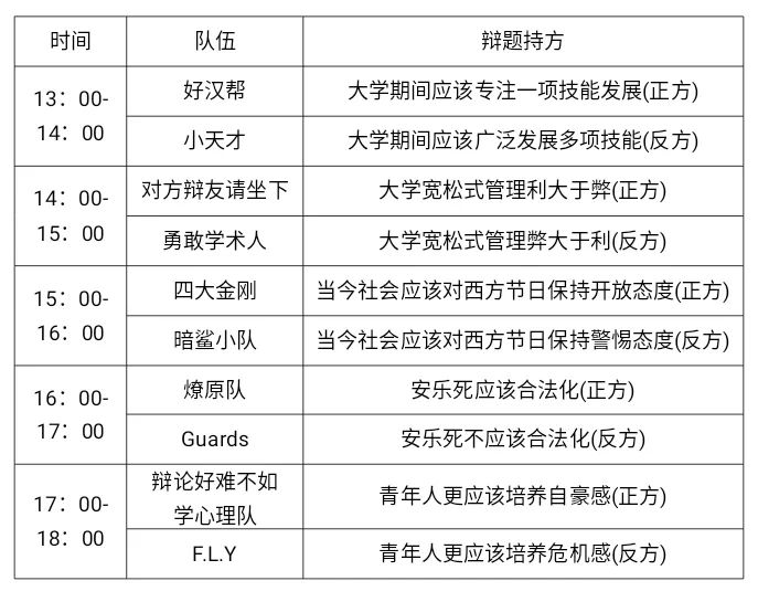 11月14日下午即将迎来辩论赛初赛,快来为你支持的队伍打call吧!