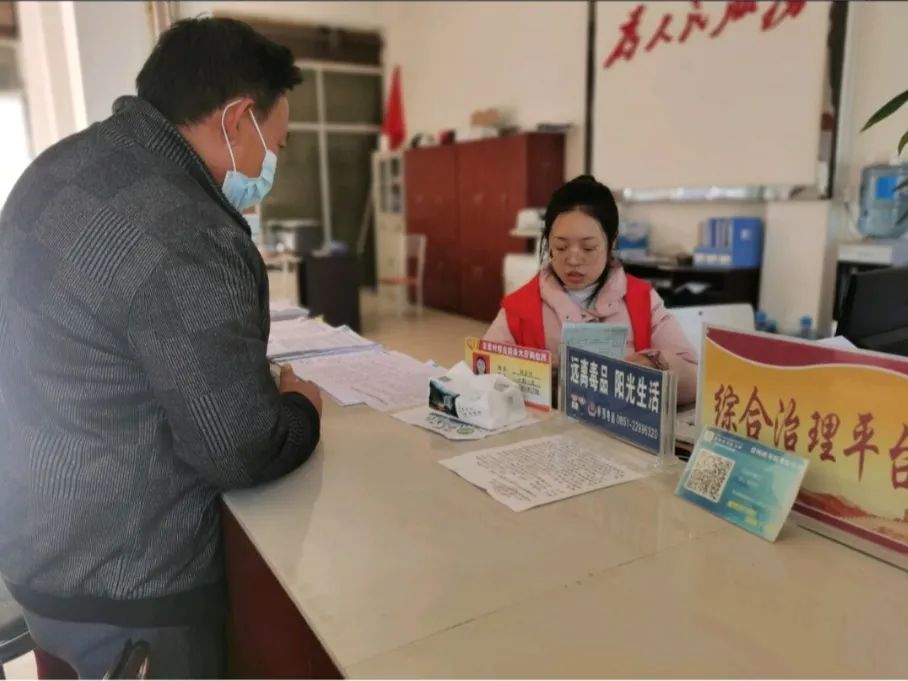 2021级研究生龚蓝英,在家乡——贵州省赤水市官渡镇玉皇村,参与到疫情防控工作,为外省返乡人员进行信息登记。