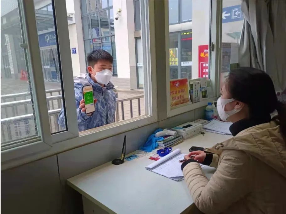2021级应用心理学班王凤,在家乡——贵州省铜仁市松桃县寨英镇半沟村,参与到铜仁汽车旅游客运站的疫情防控工作,为返乡的乘客检测体温登记,提醒乘客佩戴口罩等