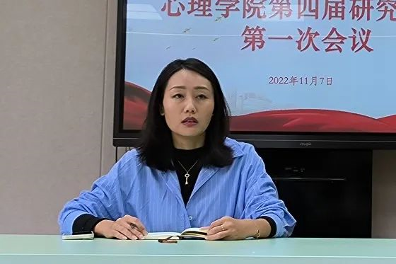 2022年11月7日中午,心理学院第四届研究生会第一次线下会议于学院楼2317召开。心理学院党委副书记饶蕾、研究生管理科科长裴子钊以及第四届研究生会全体成员参会,会议由研会负责人黄瑶主持。