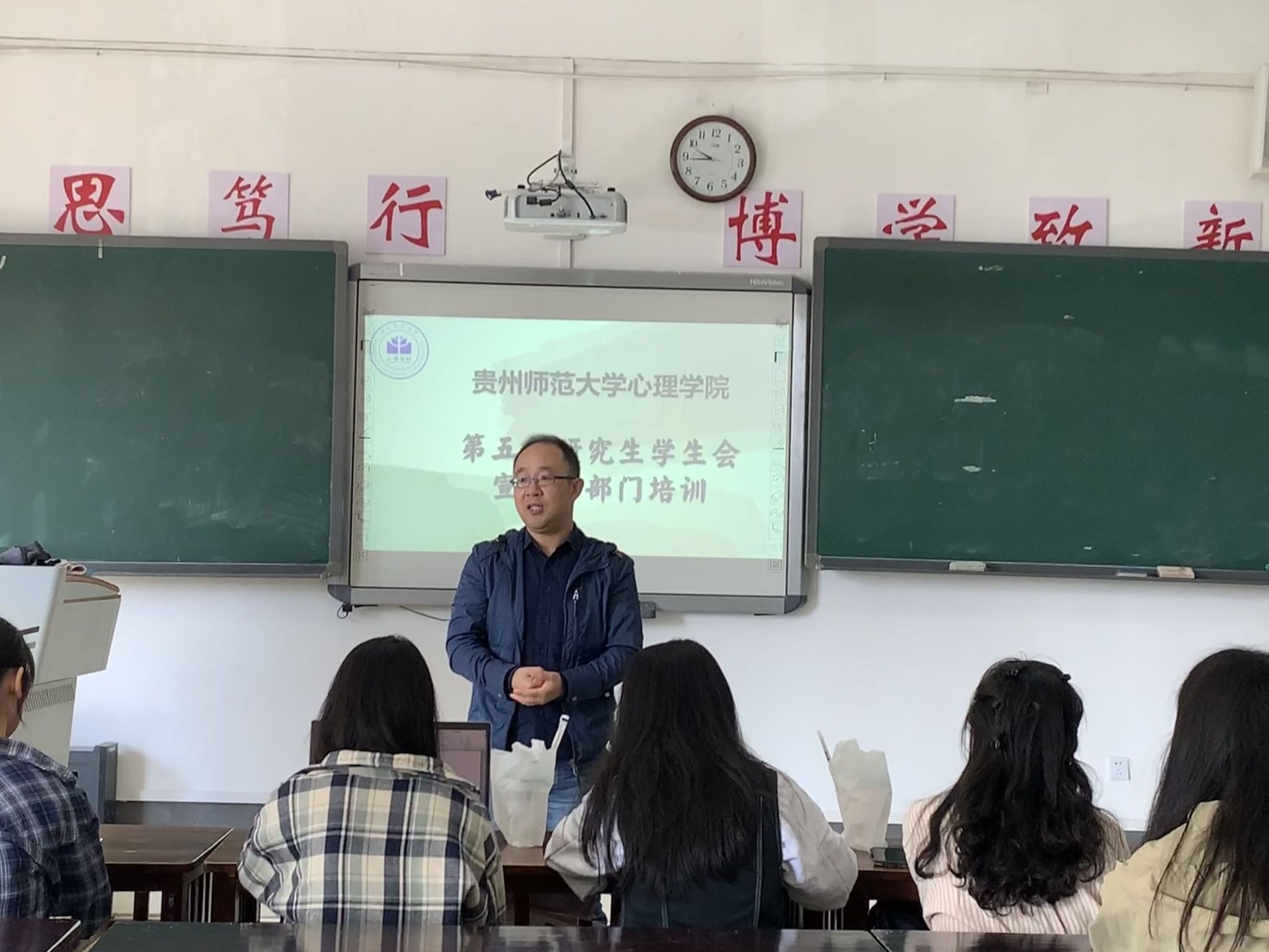 为进一步提升我院研究生会宣传部业务能力和专业技能,更好地履行宣传职责,心理学院研究生会宣传部于10月9日上午在学院楼2107教室开展部门业务培训。院研究生管理科科长裴子钊老师到达培训会现场并讲话,宣传部负责人陈媛为大家做了培训,研究生会主席团成员梁景娟主持会议,宣传部全体成员参加了培训。